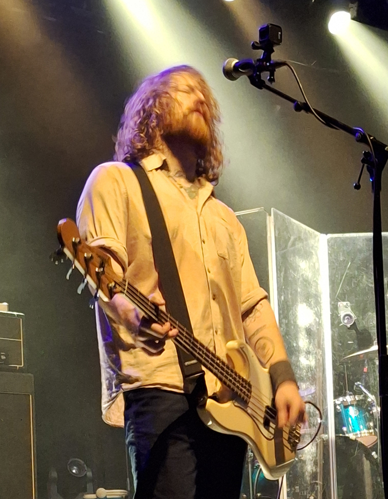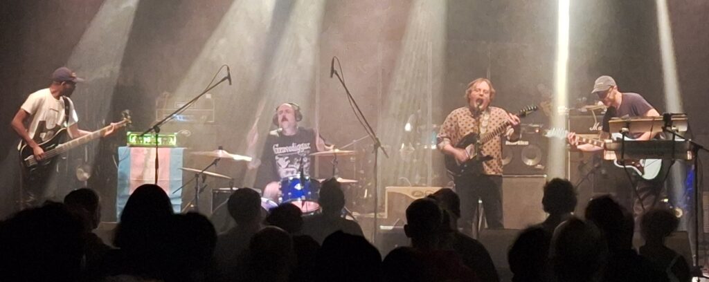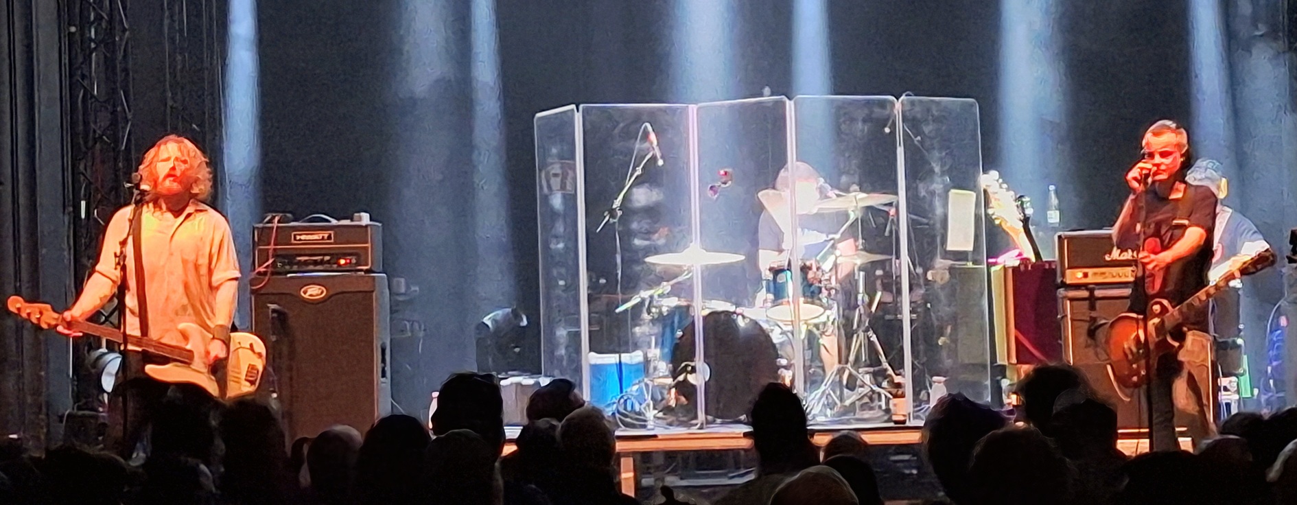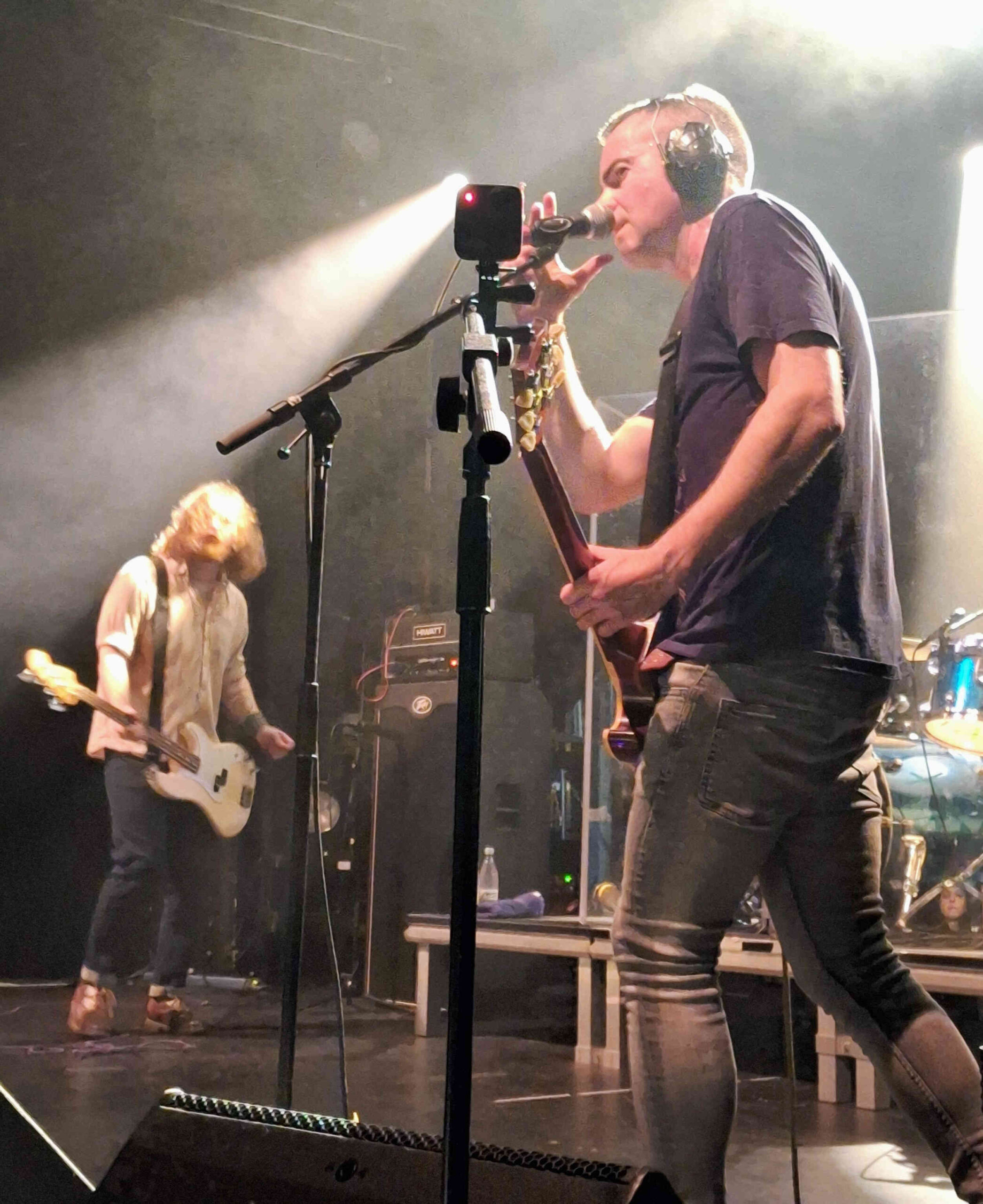 Mit der Bassline aus dem Song „Fuck This Band“, das Bandmotto, was man auch als T-Shirt kaufen kann, eröffnet Mclusky die Reise auf der Gitarrenrock-Welle der frühen 2000er Jahre. Fugazi, Pere Ubu und Mark E. Smith lassen grüßen. Der Frontmann leidet unter Tinnitus und Hyperakusis, sodass er nun mit geräuschunterdrückenden Kopfhörern auftreten muss und eine Plexiglas-Schallschutzwand um das Schlagzeug benötigt. Ich musste erst den Mann am Mischpult fragen, weil, wenn man das nicht weiß, ist es ziemlich merkwürdige Arbeitsverweigerung im Bereich höher als 120 Dezibel. Der Bassist spielte, als hinge sein Leben davon ab, und bewegte sich zu dem spitzhackigen Krach wie Donna Summer bei „I Feel Love“. Soweit zum ausgefallenen Bühnenverhalten.